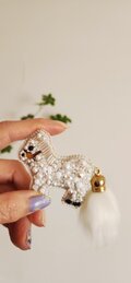 鶴さんのブローチ到着しました。思っていた物の何倍も可愛くて見た瞬間ワーっと声を上げてしまいました。お顔が可愛いし、足のブラブラも可愛い大きさも大きめですごく良いです。とてもとても気に入りました。 素晴らしい作品を本当にありがとうございました ポケットティッシュ入れもプレゼントしていただきありがとうございます。使わせていただきますますね。 鶴さんは大切に大切に致します。