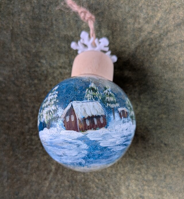 ガラス風のプラスチック透明ボールに雪景色を描きしました。