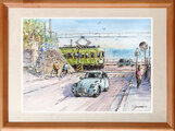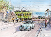 水彩画原画 ドライブ日和・鎌倉高校前駅踏切 #707