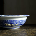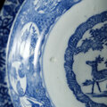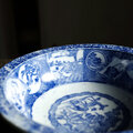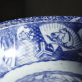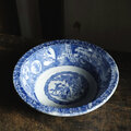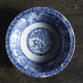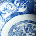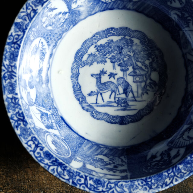 鹿と馬と鳥◆富士の山や風景。時代物 染付判大鉢 碗 骨董・antiques 古民家 明治〜大正期