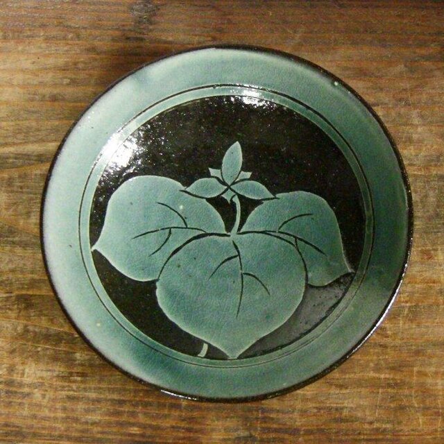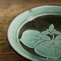 化粧泥は北海道蘭越町で採掘した白粘土を使用し、釉薬には自家製灰をブレンドした青緑釉を使用。