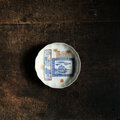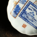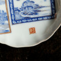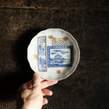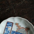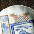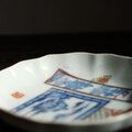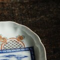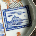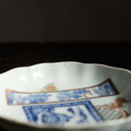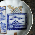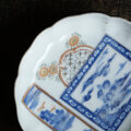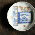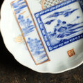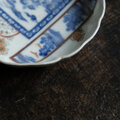お正月に◆花と山水図。伊万里 色絵印判金彩小皿 骨董/antiques 古美術 鳥 弓月 明治〜大正期