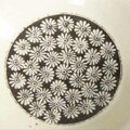 ●印花の窪んだ所に白い化粧泥を埋め込みます。(象嵌)
