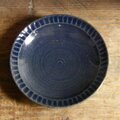 皿に「しのぎ」を施してから呉須釉を掛けて焼成しています。
