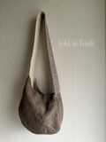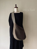 リネンとコットンで織り上げた手織りのベルトと洗いざらしたようなリネン帆布のショルダーバッグです。