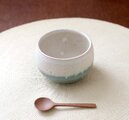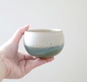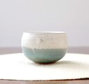 ころんと丸いお湯のみの形に成形後、ほんのり生成色のマット釉と森を思わせる深い緑色の釉薬をかけて焼き上げました。
