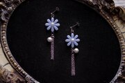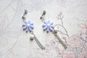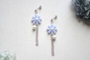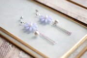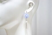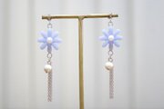 レジンアート お花とコットンパールとフリンジのピアス〈氷点〉