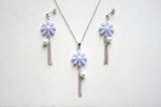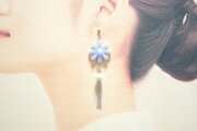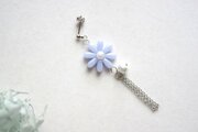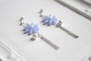 しんしんとした寒さを感じさせる青いお花に、コットンパール一粒とフリンジを添えました。