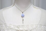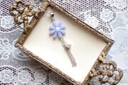 しんしんとした寒さを感じさせる青いお花に、コットンパール一粒とフリンジを添えました。