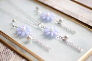 レジンでお花とコットンパールとフリンジのペンダントを作りました♪