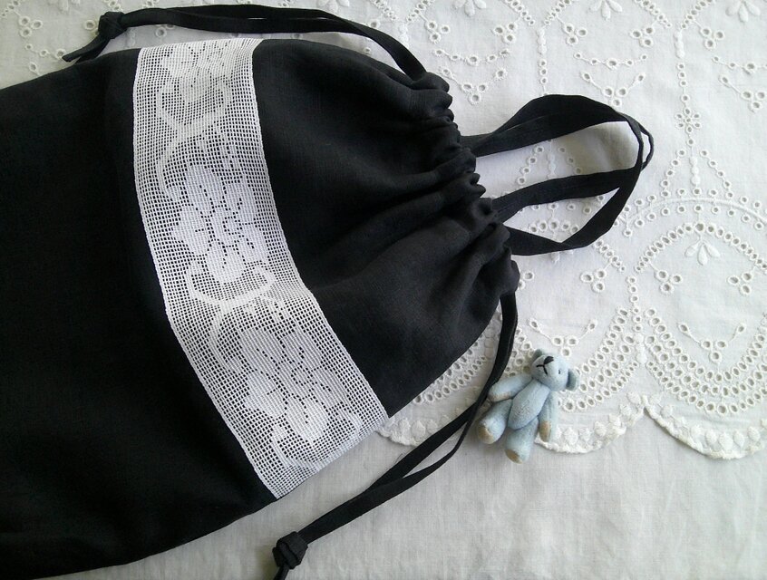 イタリアンレースとリネンの巾着スタイルです。