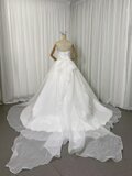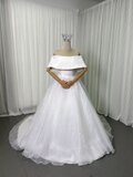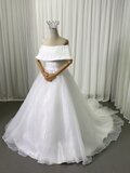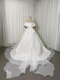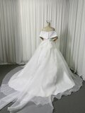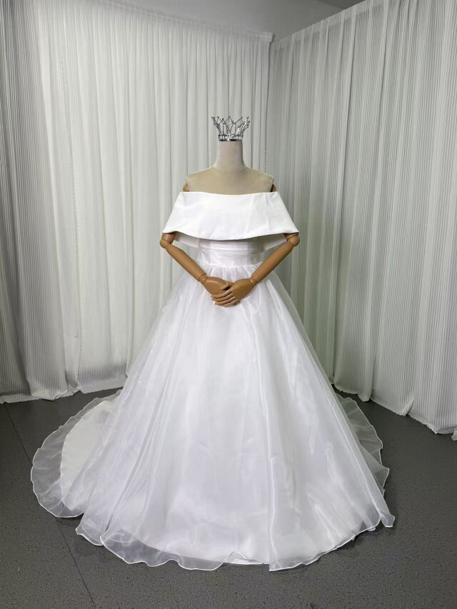 ウェディングドレス 取り外しオフショルダー Aライン バックリボン エレガント 結婚式