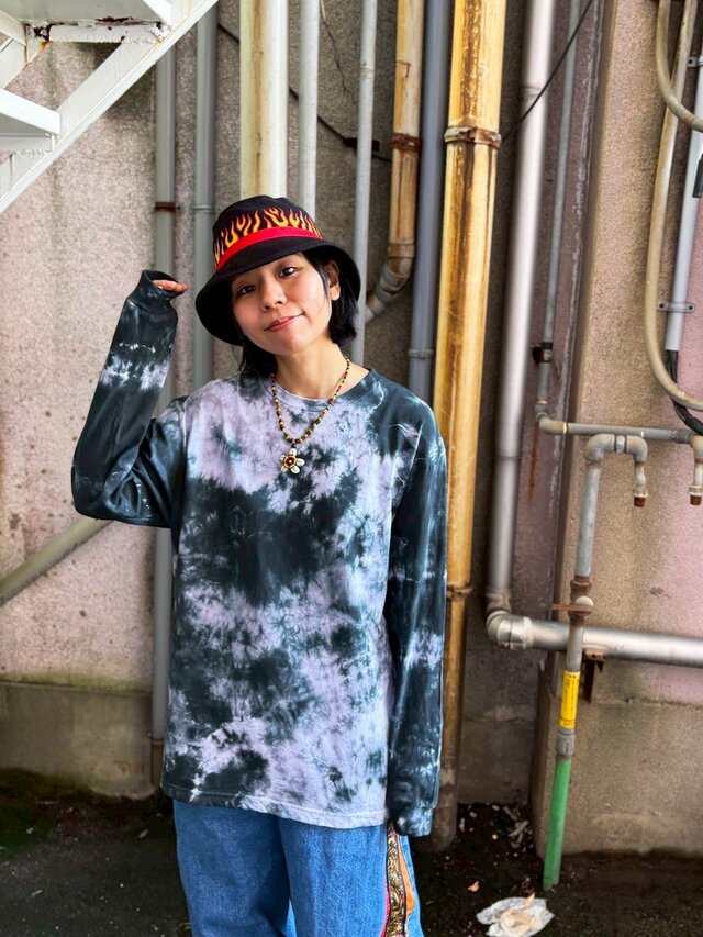 タイダイ 長袖Tシャツ Lサイズ ブラック ムラ染め HIPPIES DYE HD25-20