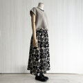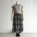 ▼ギャザーフレアロング丈スカート_選べるスカート丈_リネン100%_Natural