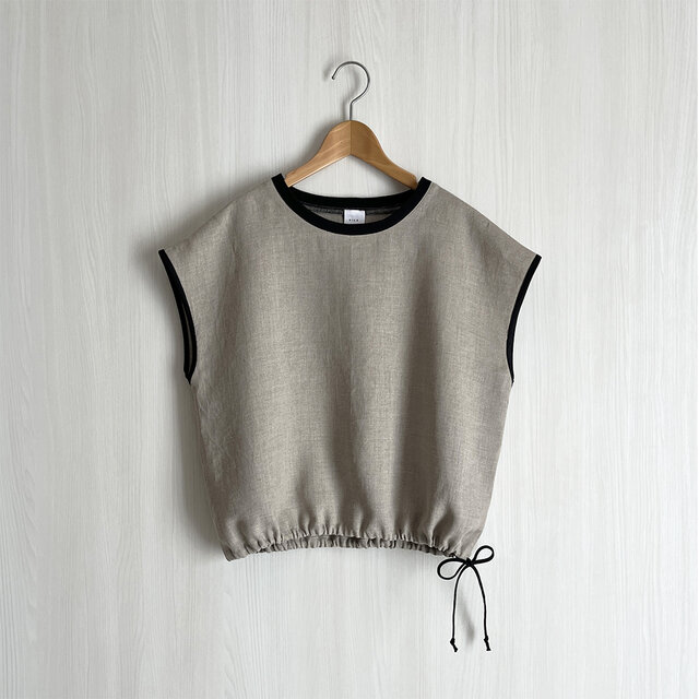衿リブフレンチ袖裾ドロストクロップド丈プルオーバー_リネン100%_Natural