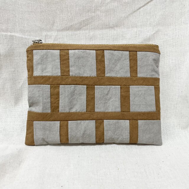 3cmの正方形をミシンでパッチワークしてポーチに仕上げました。