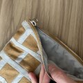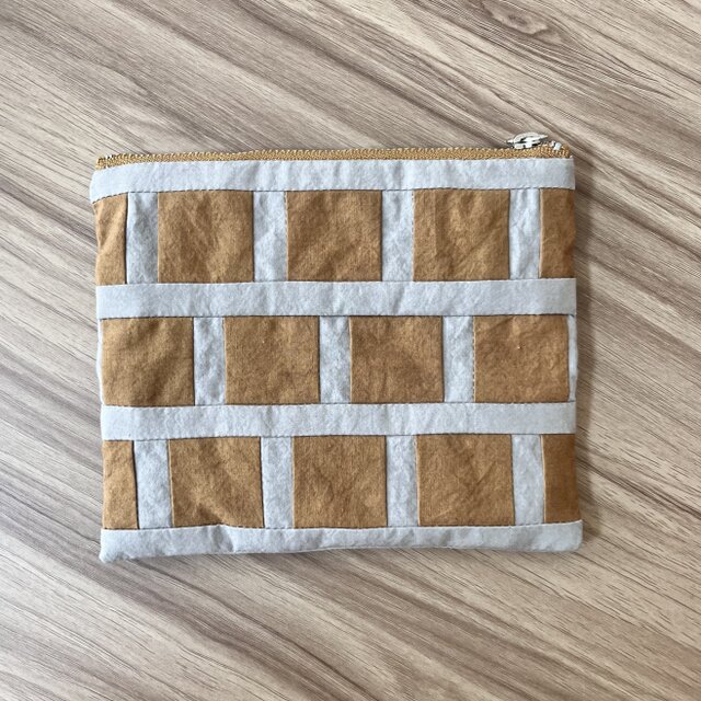 3cmの正方形をミシンでパッチワークしてポーチに仕上げました。