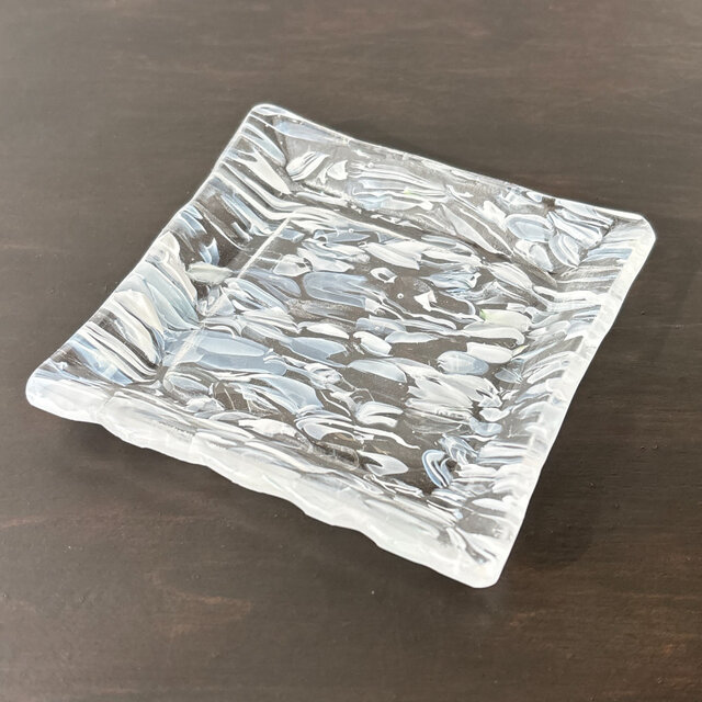 半透明の白と不透明の白色が並んだ模様の小皿です。