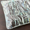 半透明の白と透明の緑色が並んだ模様の小皿です。