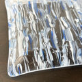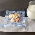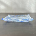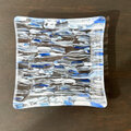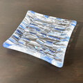 半透明の白と透明の青色が並んだ模様の小皿です。