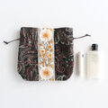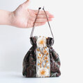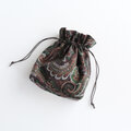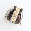 インド刺繍リボンをあしらったマチのある巾着ポーチ