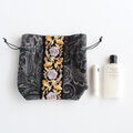 インド刺繍リボンをあしらったマチのある巾着ポーチ