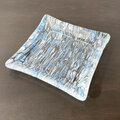 半透明の白と透明の青色が並んだ模様の小皿です。