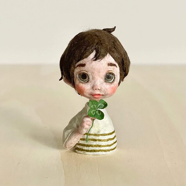 和紙人形『四つ葉のクローバーの子』小さな幸運を運ぶミニドール(胸像)