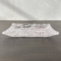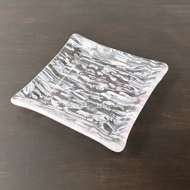 半透明の白と透明の桃色が並んだ模様の皿です。