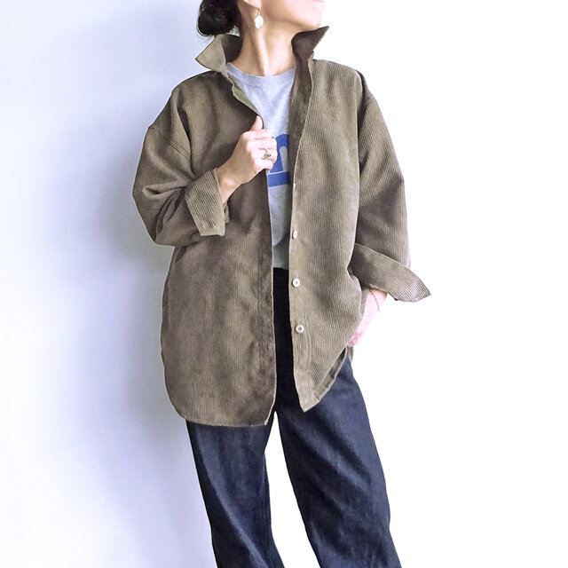 人気の軽く柔らかい太畝のコーデュロイシャツの新色カーキ
