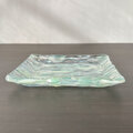半透明の白と透明の緑色が並んだ模様の皿です。
