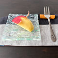 板ガラスにかけらを並べて焼く工程で泡が入り込んでいます。