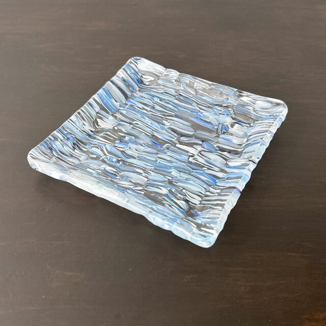 板ガラスにかけらを並べて焼く工程で泡が入り込んでいます。