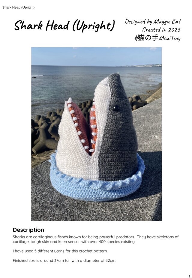 今回はサメヘッドの編み図を紹介します。好きな色を組み合わせても大丈夫ですよ。