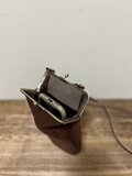 姫路レザー親子がま口ポシェット◆焦げ茶 カード入れ スマホショルダー サコッシュ