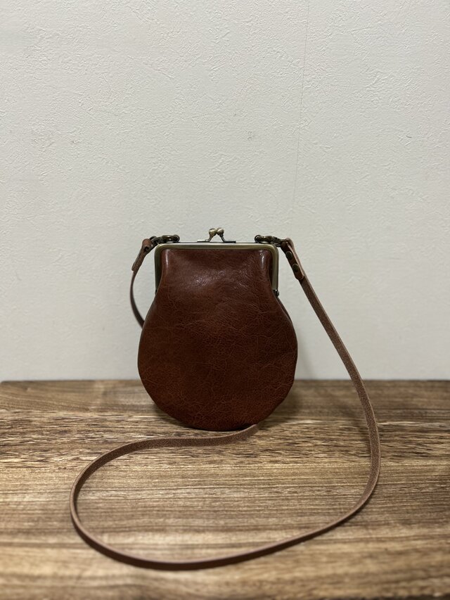姫路レザー丸型がま口2wayポシェット◆焦げ茶 一点終了商品とっても素敵なバックをありがとうございました。 大切に使わせて頂きます。