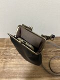 姫路レザー親子がま口ポシェット◆焦げ茶 カード入れ スマホショルダー サコッシュ