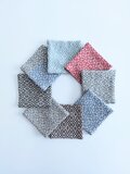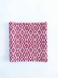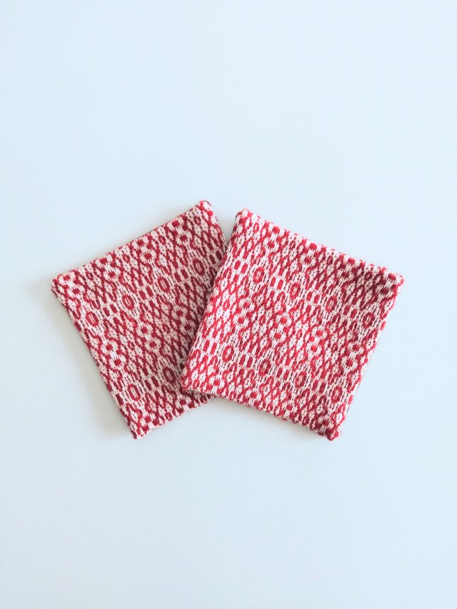 経糸にコットン、緯糸にウールの細い糸を用い、オーバーショット織りでコースターに仕立てました。