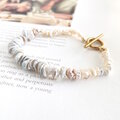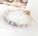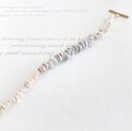 ライトライトシルバーのケシパールを中央に配置し、ペールカラーの小さなケシパールを左右にグラデーションに組んだケシパールのブレスレット。