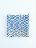 とても深みがあり複雑な青と落ち着いたクリーム色が素敵で、見入ってしまいます。質感も柔らかく、優しい肌触りで着用する時がとても楽しみです。大切にします。ありがとうございました。