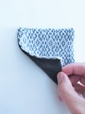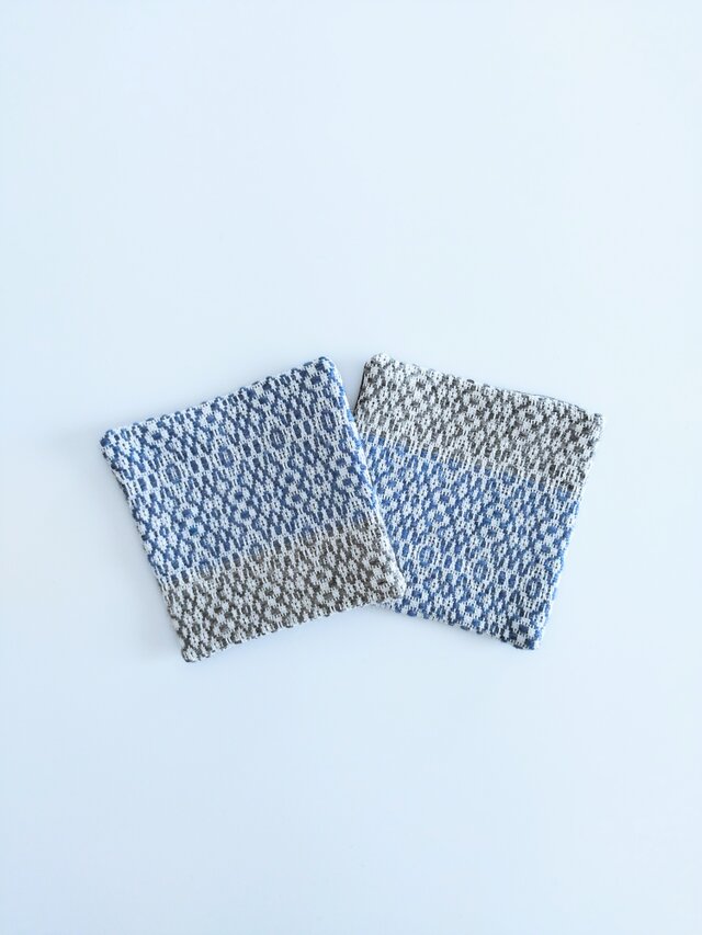 経糸にコットン、緯糸にウールの細い糸を用い、オーバーショット織りでコースターに仕立てました。
