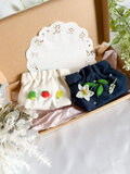 ビーズを縫い付けてありますので、洗濯は避け、汚れたところはそっと濡れタオルなどで拭いてお使い下さい。