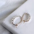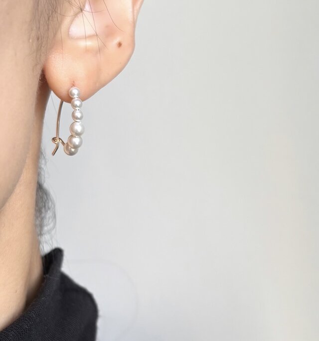 4ミリ、3ミリのパールを使用したパールが孤の字を描くキャッチレスマーキスピアス。