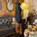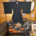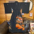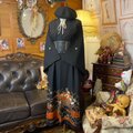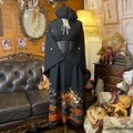 【 黒留袖 着物 リメイク ワンピース ドレス ロング 和洋折衷 洗える 化繊 ハンドメイド レトロ 古着 雲取りに花車と百花繚乱 TKW-100】