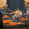 凛とした黒地に、溢れんばかりの花々を載せた花車が描かれています。幸せを呼び込むとされるこの文様は、纏うだけで周囲を明るく、お祝いのムードで包み込んでくれます。花車が運ぶ幸福と、金彩の輝きに包まれて。鏡の中に映る自分は、かつてないほど気高く、自由な輝きに満ちているかもしれない。