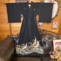 【 黒留袖 着物 リメイク ワンピース ドレス ロング 和洋折衷 洗える 化繊 ハンドメイド レトロ 古着 波間に舞う金鶴と吉祥文様 TKW-101】