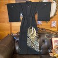 黒留袖 着物 リメイク ワンピース ドレス ロング 和洋折衷 洗える 化繊 波間に舞う金鶴と吉祥文様 TKW-101