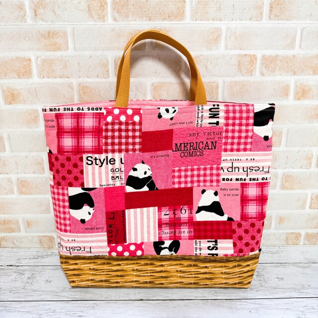 大きいレッスンバッグ(裏キルト) 【パンダ★赤】
