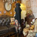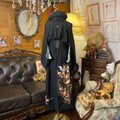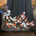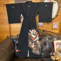 【 黒留袖 単衣着物 リメイク ワンピース ドレス ロング 和洋折衷 洗える 化繊 ハンドメイド レトロ 古着 飛鶴と凛たる梅文様 TKW-104】