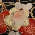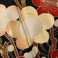 凛とした黒地に、気高く舞い上がる鶴と、早春の訪れを告げる梅の花が描かれています。